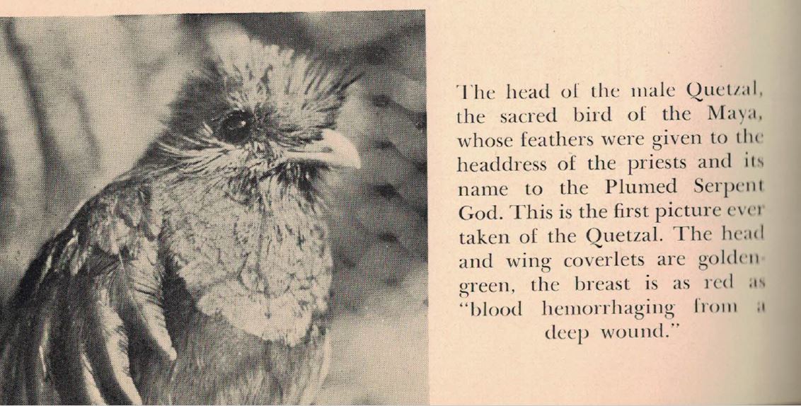 Several fledglings were trapped and brought to his encampment where he nourished them for weeks before drugging them so that had a chance of surviving the long return journey by land and sea. The birds made it to the zoos but did not last very long. The London Zoo purchased three male and three female Quetzals but all had died by 1941. The Bronx Zoo purchased three Quetzals, but two died within eight months and the third survived for just over a year. von Hagen never mentions this in any of his books.
